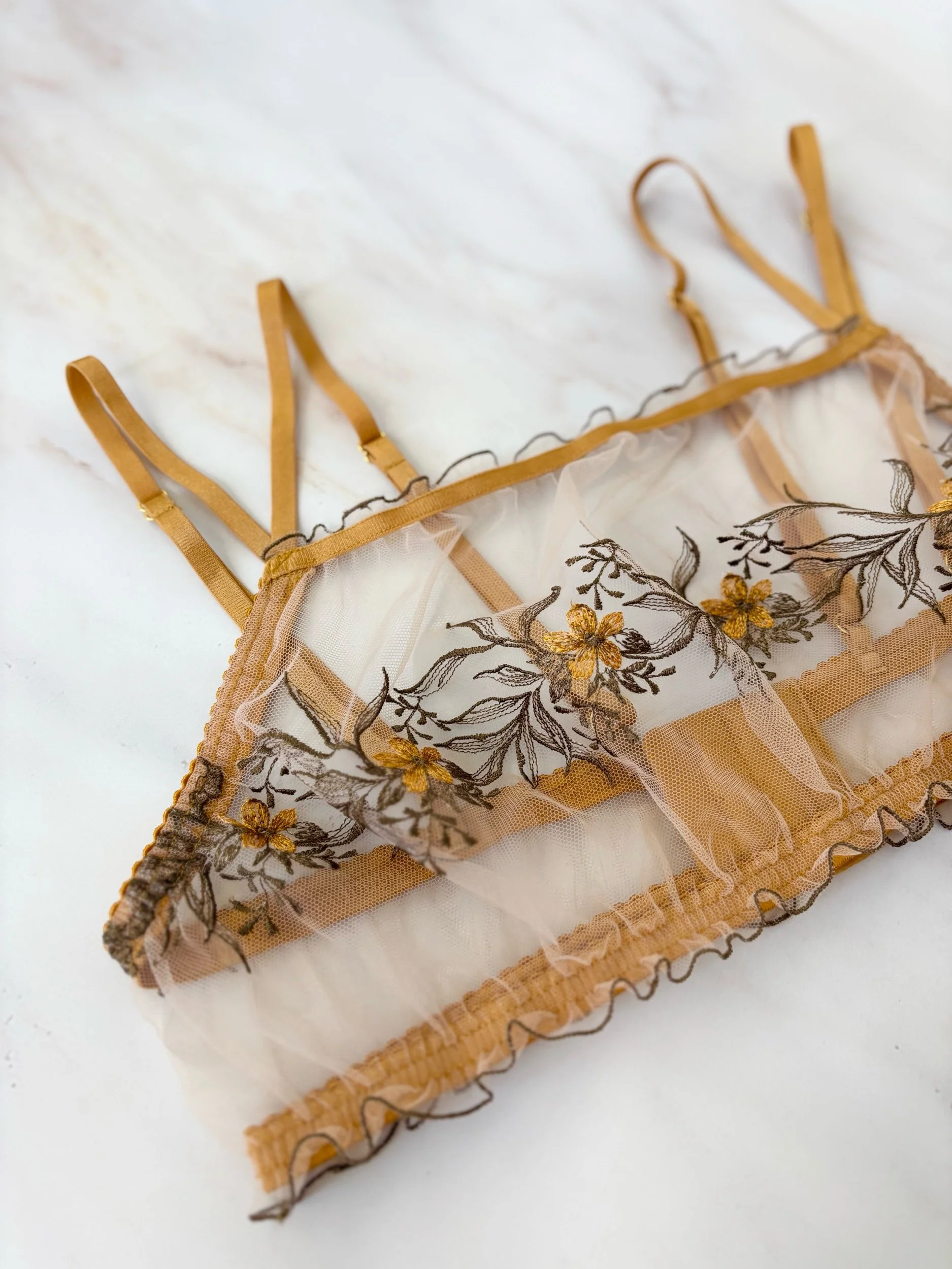 Goldenrod square neck ruffle bralette